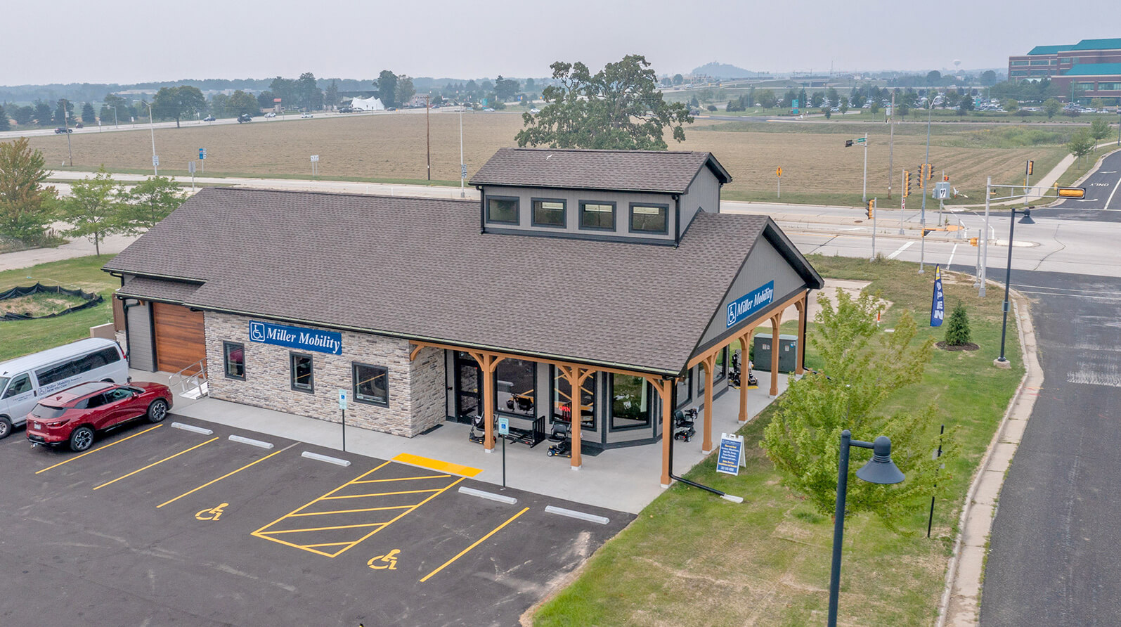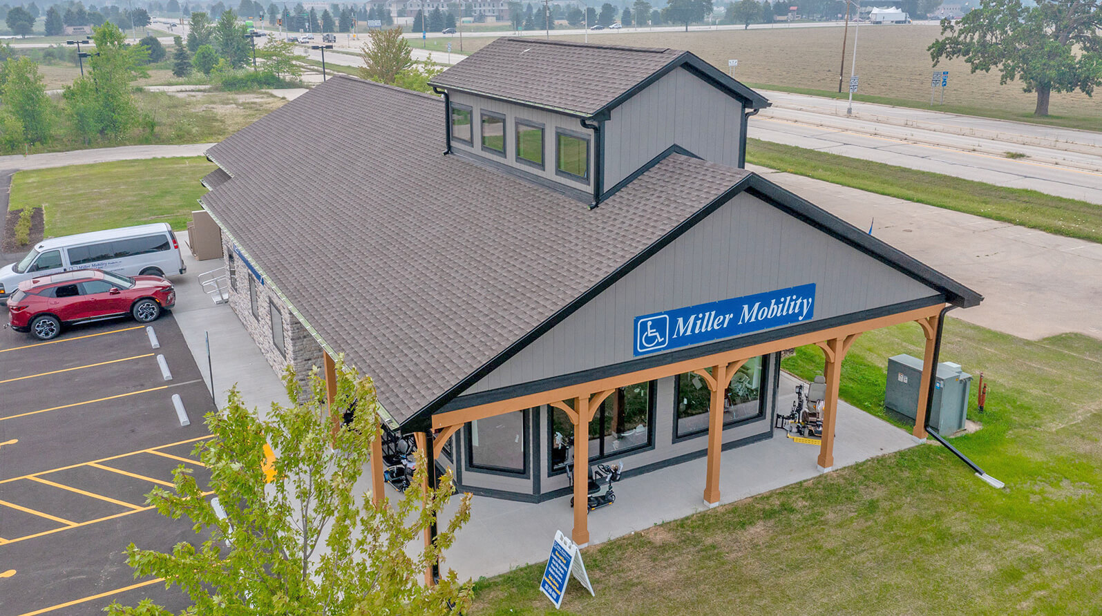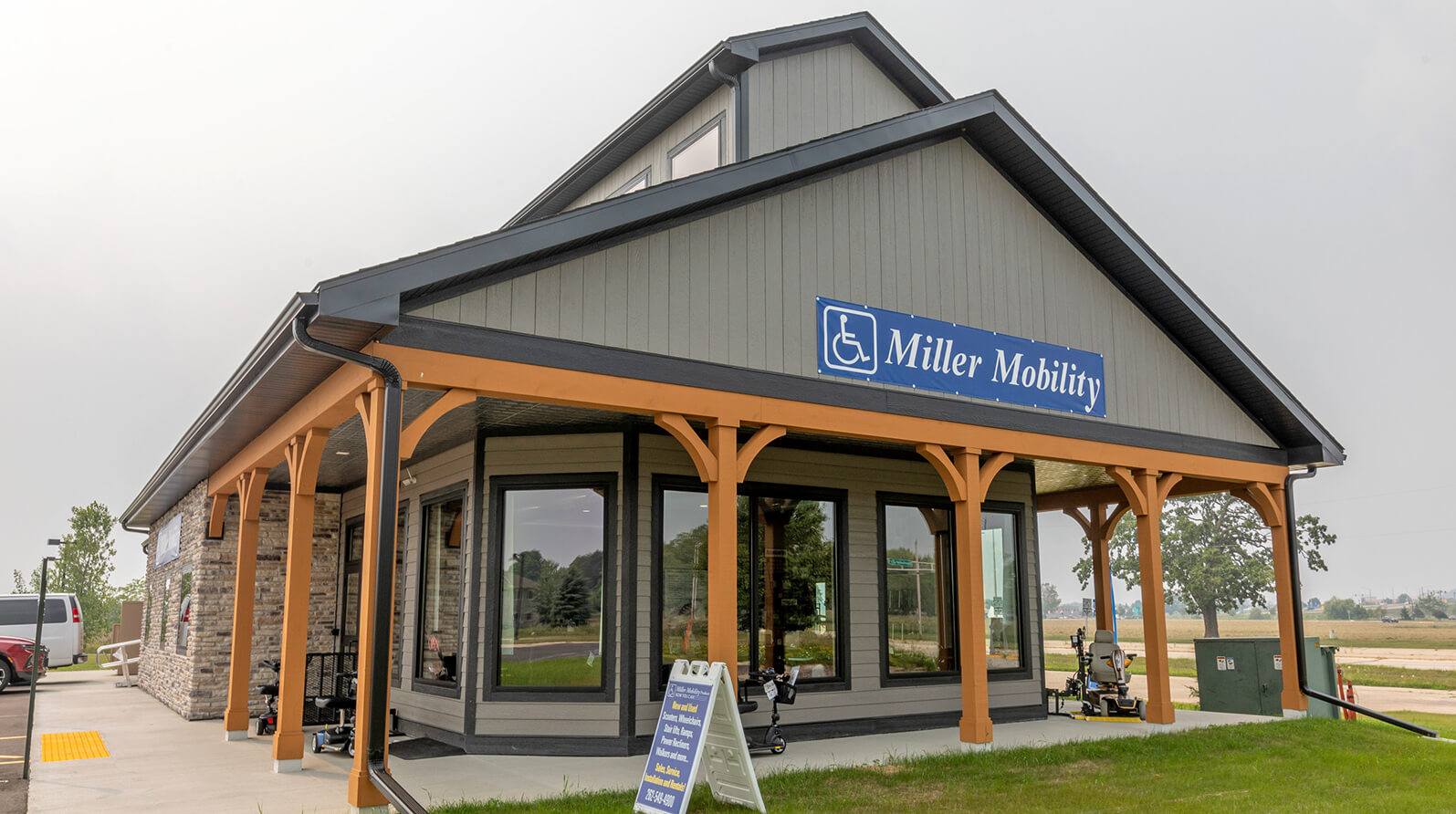 Miller Mobility is an extensive resource for mobility and medical equipment. As a family-owned business, the owners wanted to provide clients with a true at-home showroom experience. The modern farmhouse aesthetic of their 3,200-sq.ft. building offers a welcoming appeal in its commercial park location adjacent to a prominent hospital. The new retail environment includes showroom and office space as well as inventory storage and an outdoor display area.